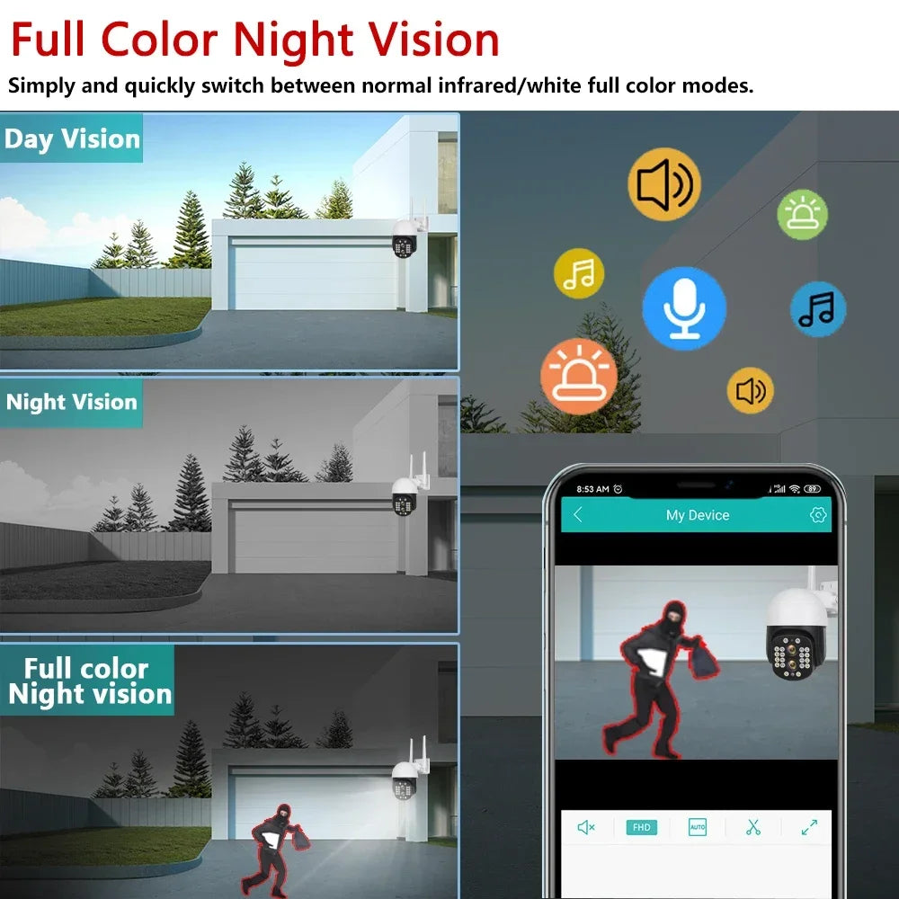 Protect your home with advanced dual-lens technology, AI human detection, and powerful night vision. This 4K wireless IP camera gives you instant awareness, clear visibility from any distance, and full control from anywhere through the Smart Life app.