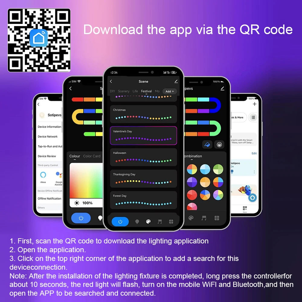 - Smart App Control: Full customization options let you adjust colors, brightness, scenes, and automation—giving you total control from your smartphone.